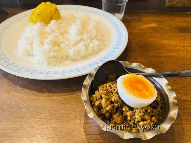 ↑キーマ、美味しかった。辛さは後からピリッとくる感じ。色んなスパイスを感じさせてくれる。この金属の器がたまらない。